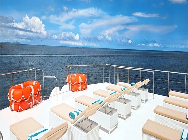 Picture this - you are cruising through crystal-clear waters under the warm sun, enjoying an amazing Seaview from the deck. After boarding, take some time to relax and enjoy snacks, fruits, and drinks with your family or friends. You can go snorkeling or try some non-powered water activities such as water jumping, water sliding, SUP, and crystal kayaking.